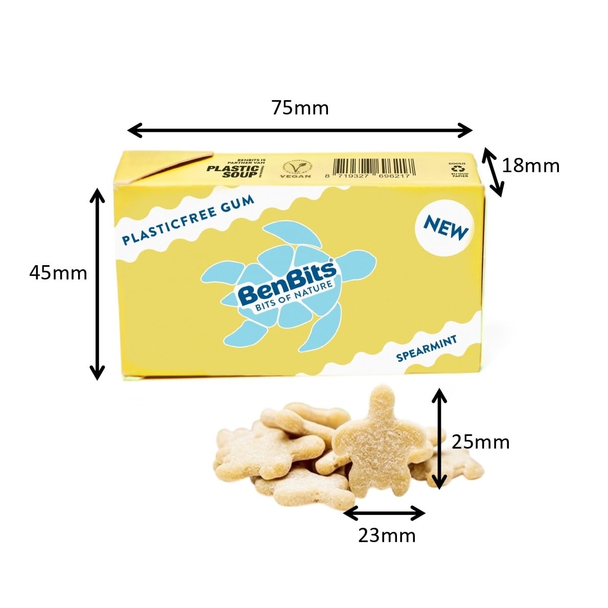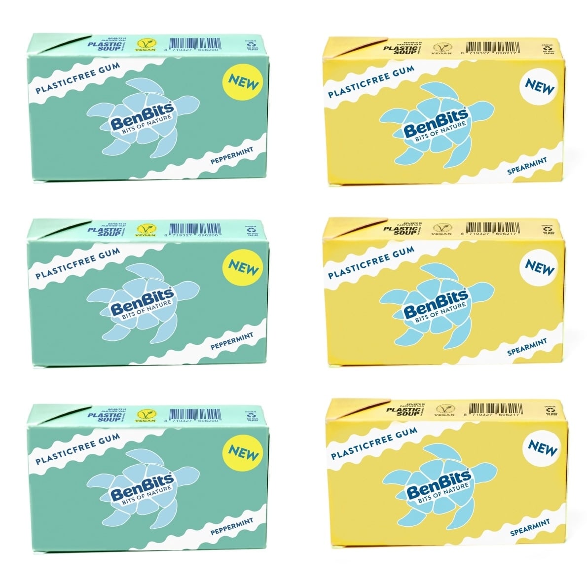 BenBitsは、シュガーフリー、プラスチックフリー、ヴィーガン、そしてナチュラルなチューインガムを製造しています。ユニークなタートル形はサステナビリティの象徴です。オランダの自社工場で製造されています。